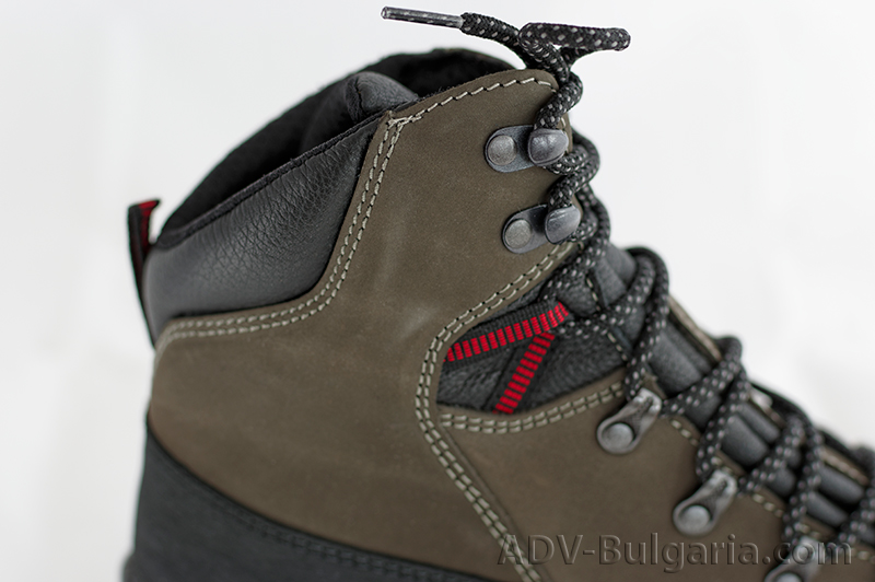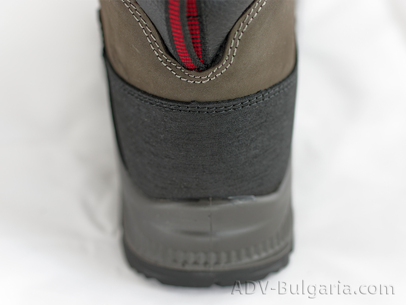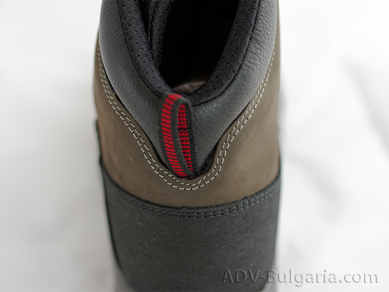 Важен момент от конструкцията е гумения борд, който обикаля обувката отвсякъде и дори е по-висок в зоната на петата. За разлика от масовата практика, тук борда е не само лепен, но и пришит към останалата част на обувката със здрав двоен шев.