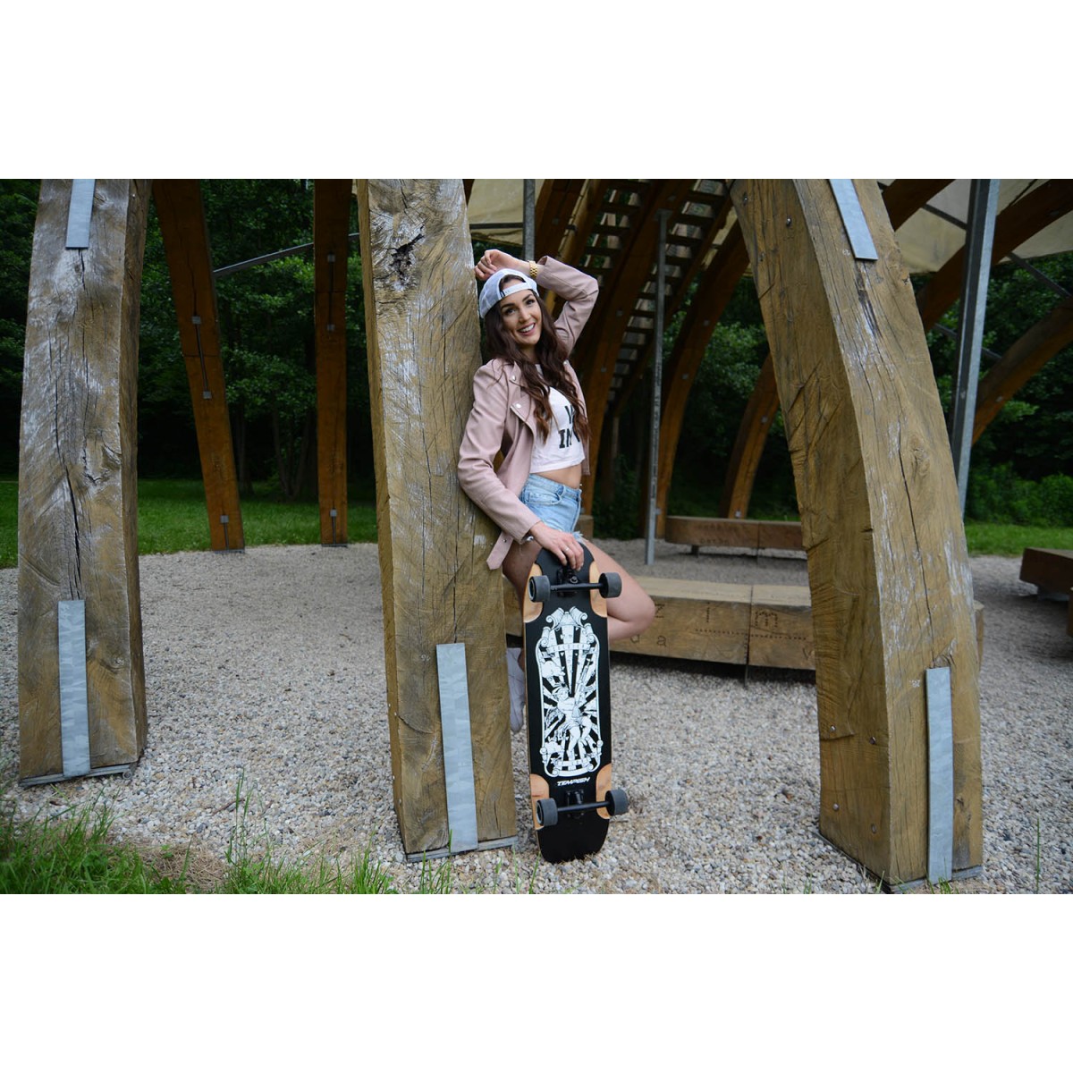 Този модел се справя с високи скорости и елиминира много добре вибрациите при каране. Благодарение на дъската и колелата, моделът е подходящ и за слайдове.