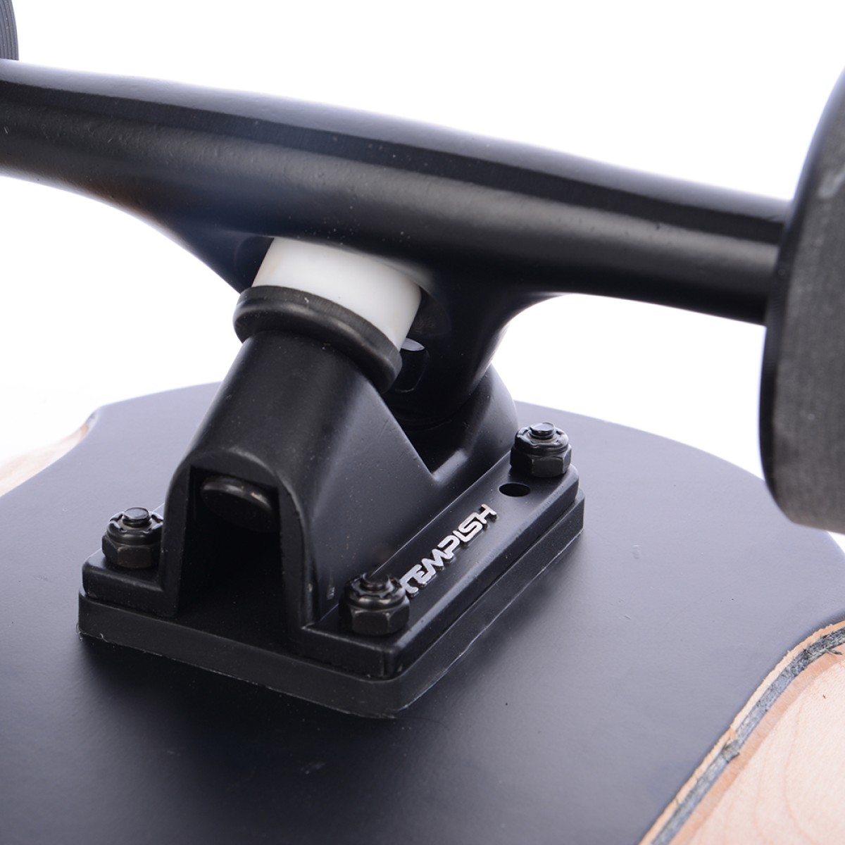 Благодарение на 50 ° 7 "heavy duty машинки, Вие получавате по-голяма стабилност и дъската е по-лесна за завъртане. На дъската има специална шкурка за тежко натоварване, която осигурява по-добро вцепление за краката Ви поради по-голямата грапавост.