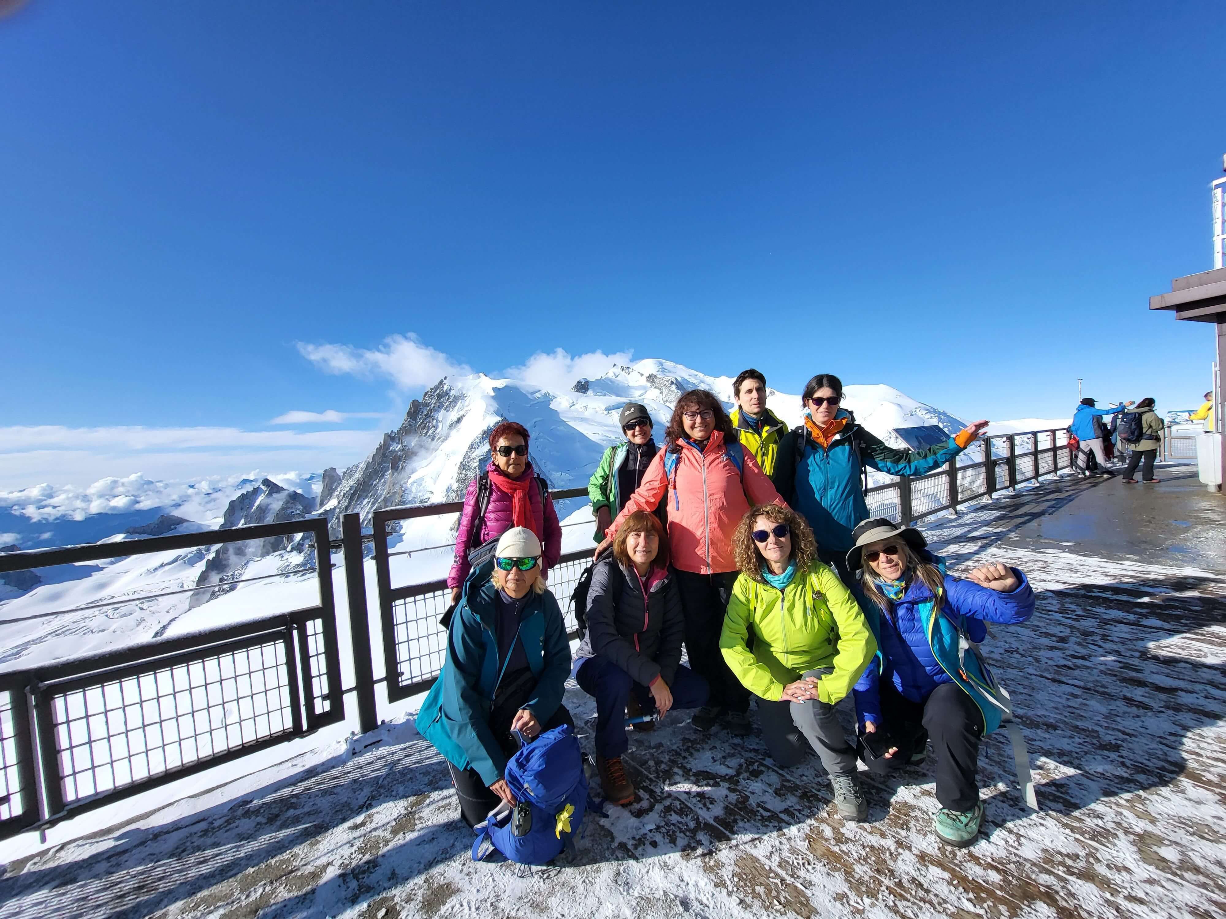 Рано сутринта се качихме с лифта до Егюи дьо Миди -3850 м - най-високата точка, до която може да се стигне с лифт. Времето в Шамони не беше обещаващо - имаше мъгла и валеше дъжд. Но горе беше чисто и слънчево. Там си направихме купчина разкошни снимки на фона на Монблан 4810 м. Качихме се на всички възможни панорамни площадки, включително и на една стъклена площадка, изнесена върху скалите. Всички бяхме много щастливи!