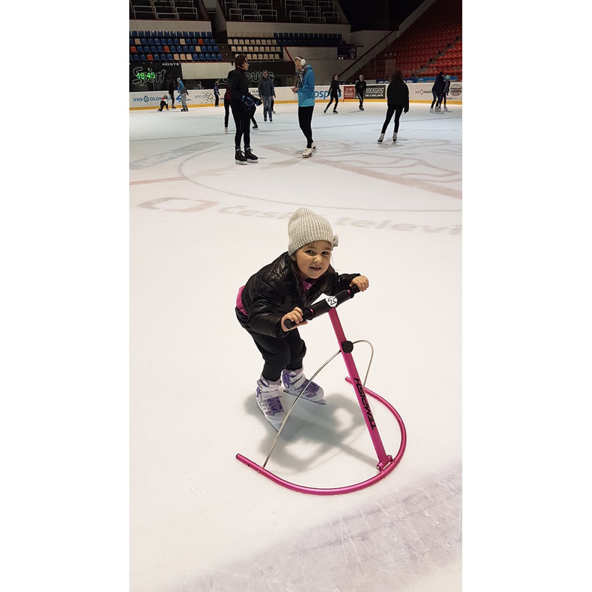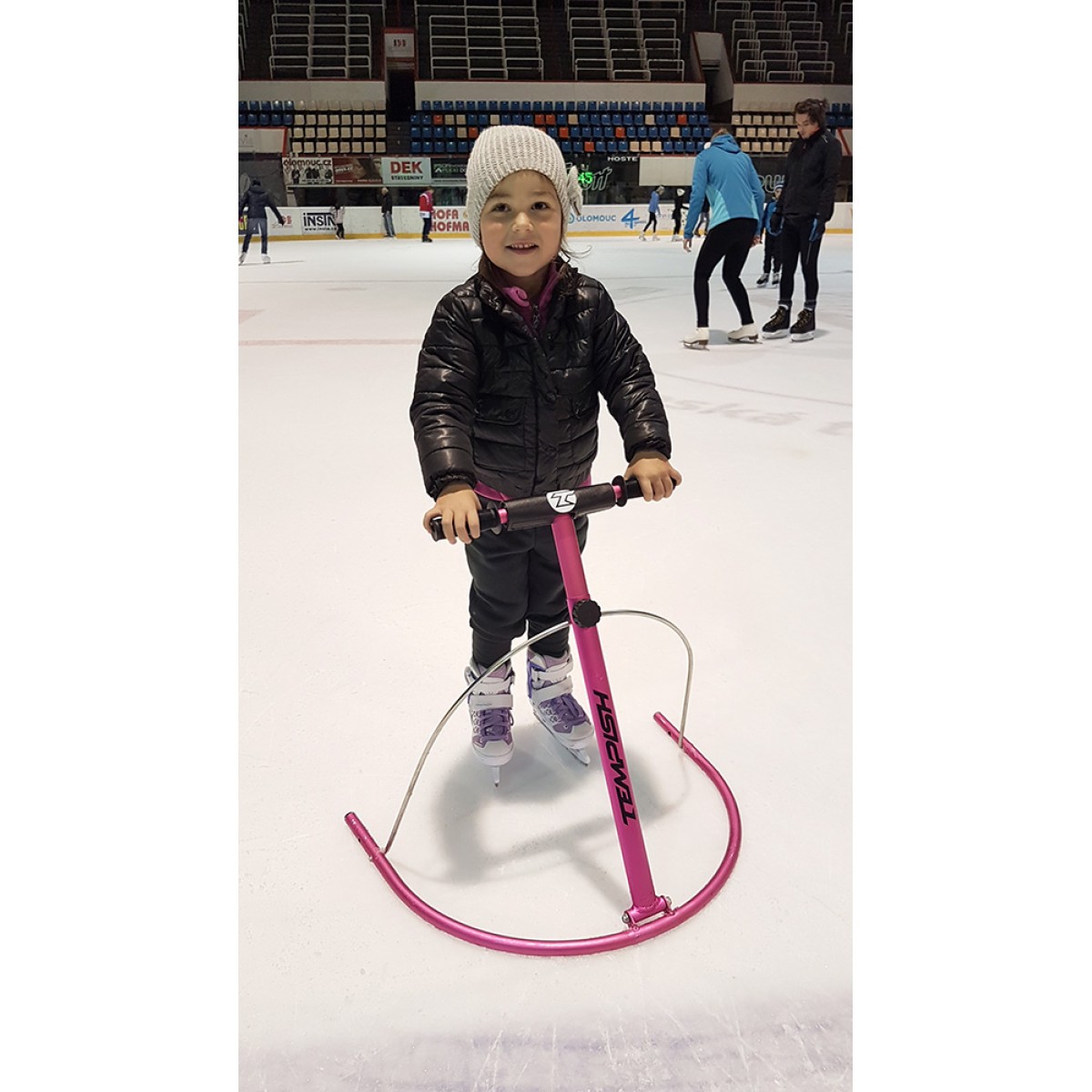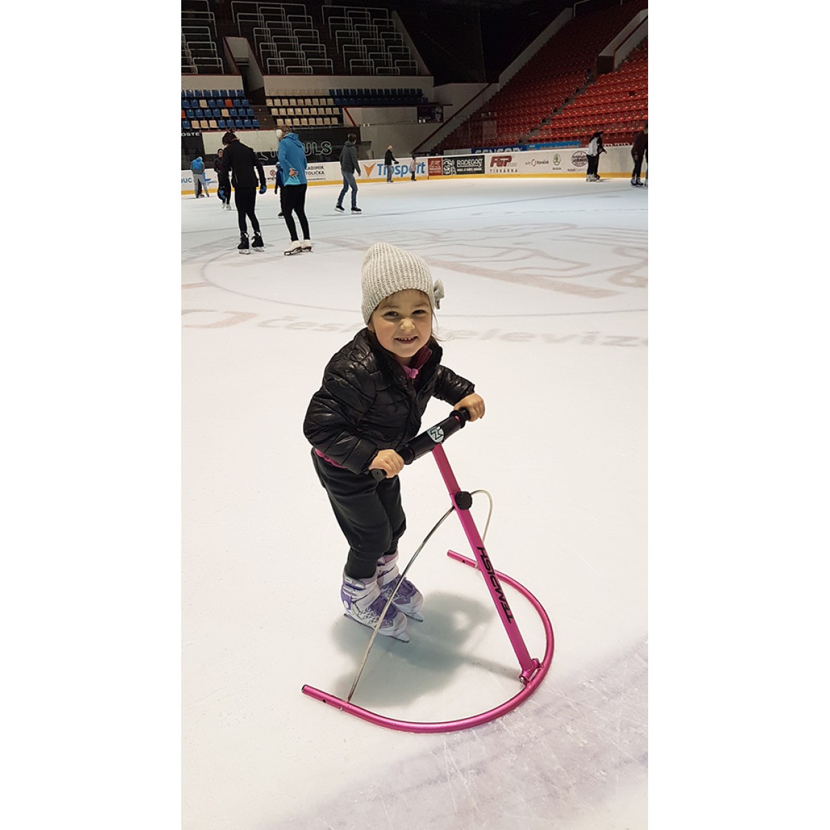 The skate trainer has an adjustable handle height from 60 to 87 cm. It is, therefore, suitable for small children from about 2.5 years to beginning skaters with a height of about 150 cm.