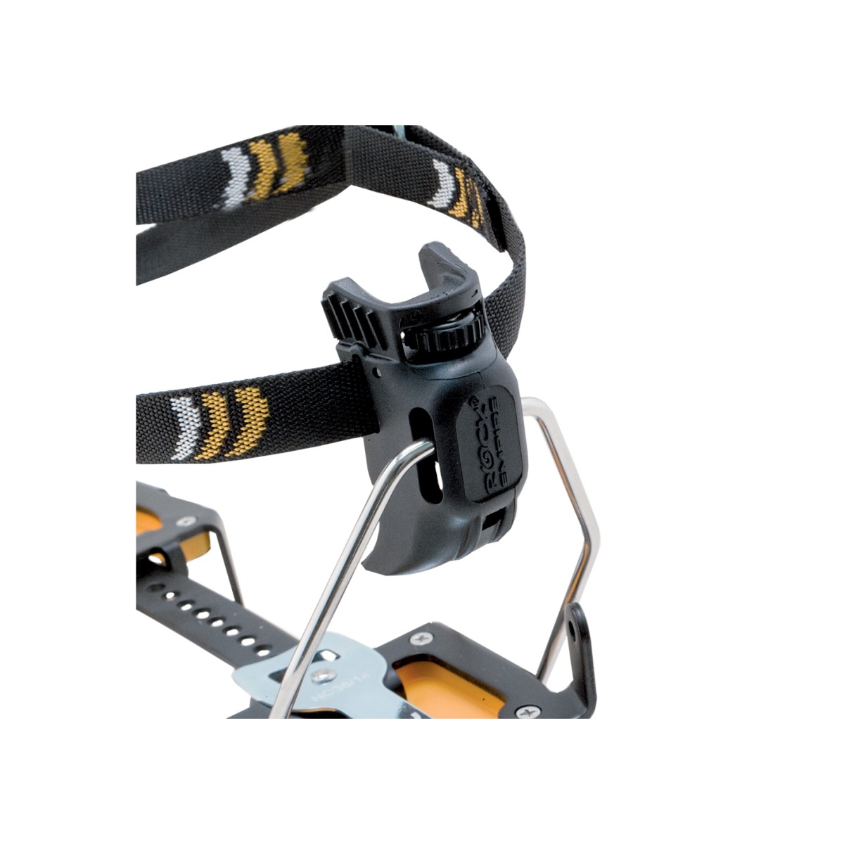 - The strap is sewn to the plastic clamps. The embossed design on the front teeth makes them stronger and more resistant to twisting, which increases confidence when climbing on a rock