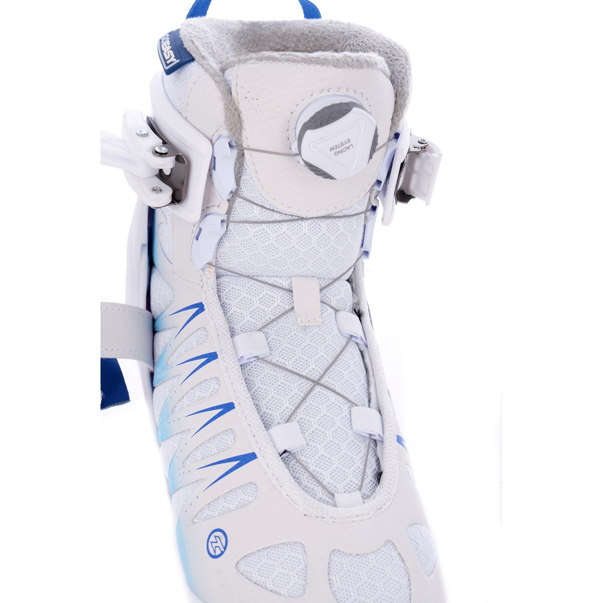 Този модел е оборудван със система FitGo. Тази революционна система за затягане на връзки от nylon позволява много бързо и здраво затягане и разхлабване и висок комфорт. Отворите от nylon заедно с връзките от nylon осигуряват почти неограничен живот на цялата система. Фиксирането на стъпалото е завършено под ъгъл 45 ° към крака с велкро лента и каишка с катарамата в областта на пищяла.
