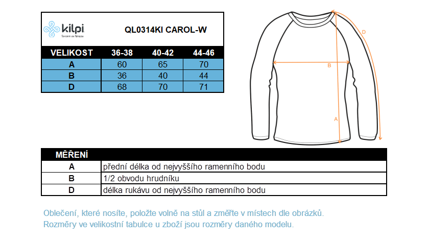 За оптимално действие и комфорт, термоблузата CAROL трябва винаги да се носи директно върху тялото, преди следващия (втори) слой или самостоятелно в зависимост от атмосферните условия.