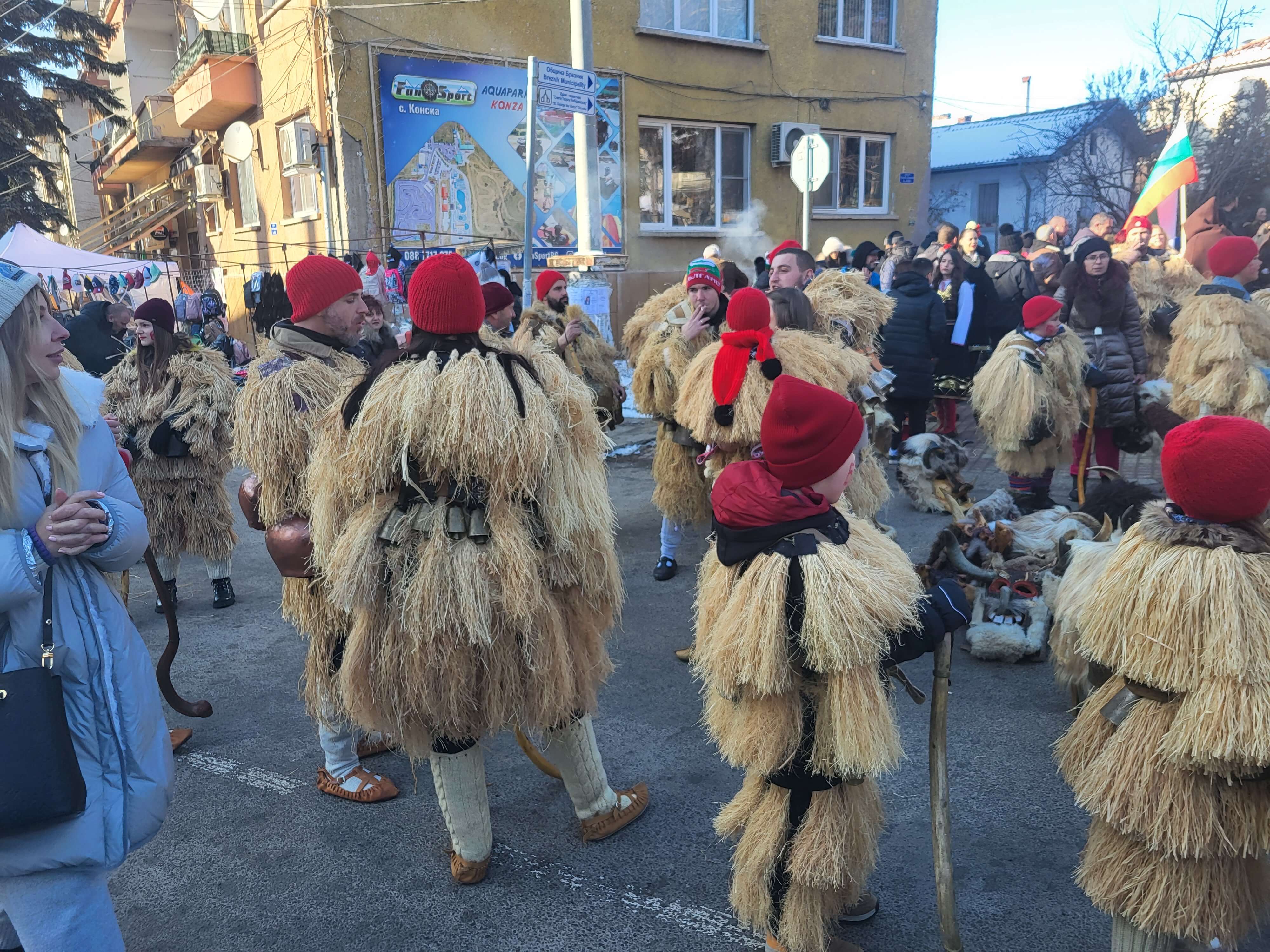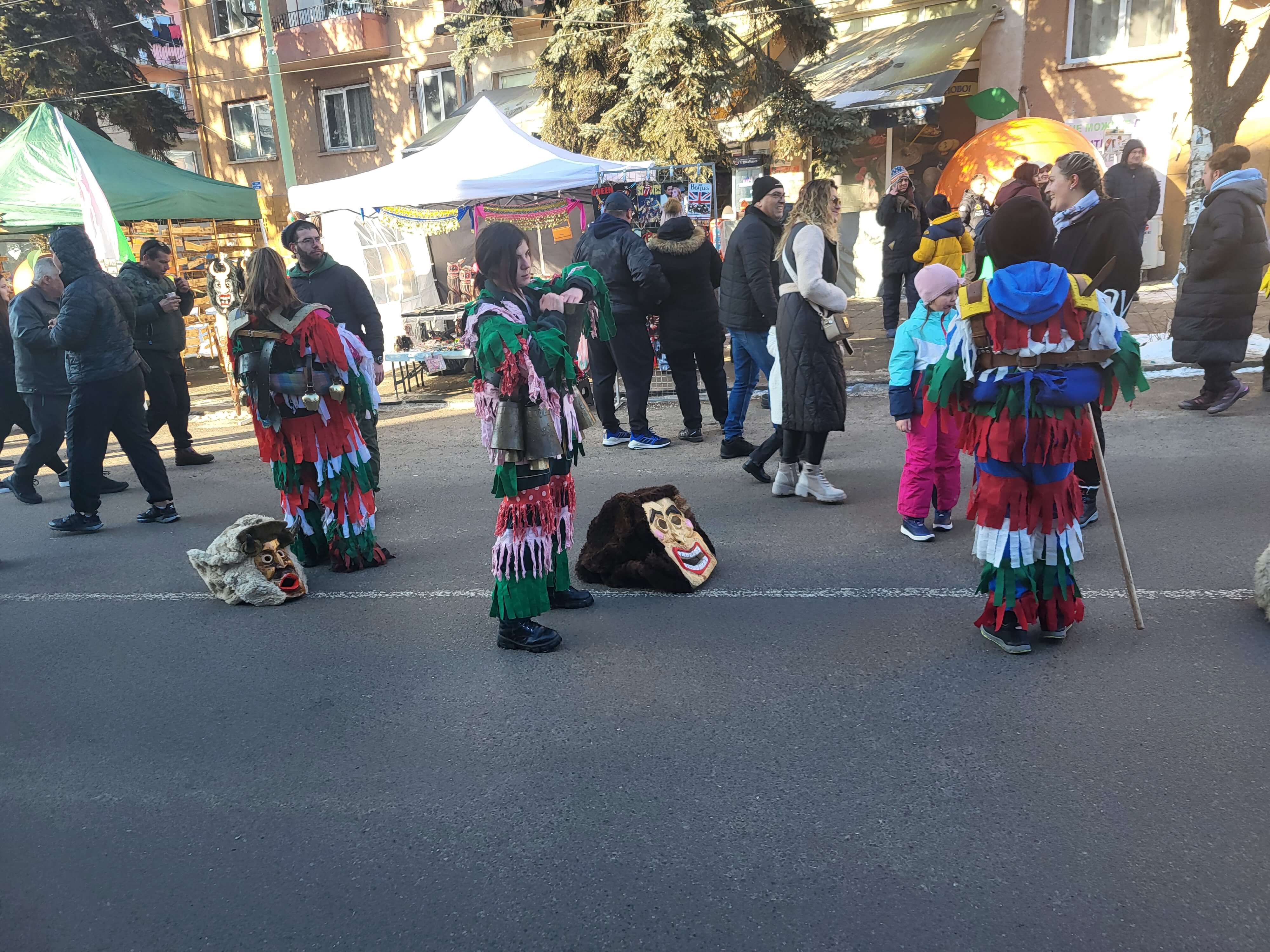 Сляхме се с тълпата в Брезник. Минахме през различните групи кукери от различни краища на България и направихме много снимки. Бяхме много впечатлени от различните костюми.
