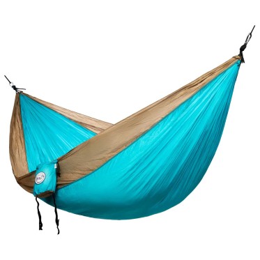 Tourist double hammock is the ideal compact hammock for your trip. Super light and comfortable, easy to carry and takes up almost no space, stored in the bag. Whether you are going on holiday at the sea, in the mountains, whether you are camping or touring for a long time with a backpack on your back, we believe that there will always be a place for a tourist hammock. It is made of parachute silk - a type of special polyamide, which is the main reason for all the above advantages. The perfect material for making a portable hammock.