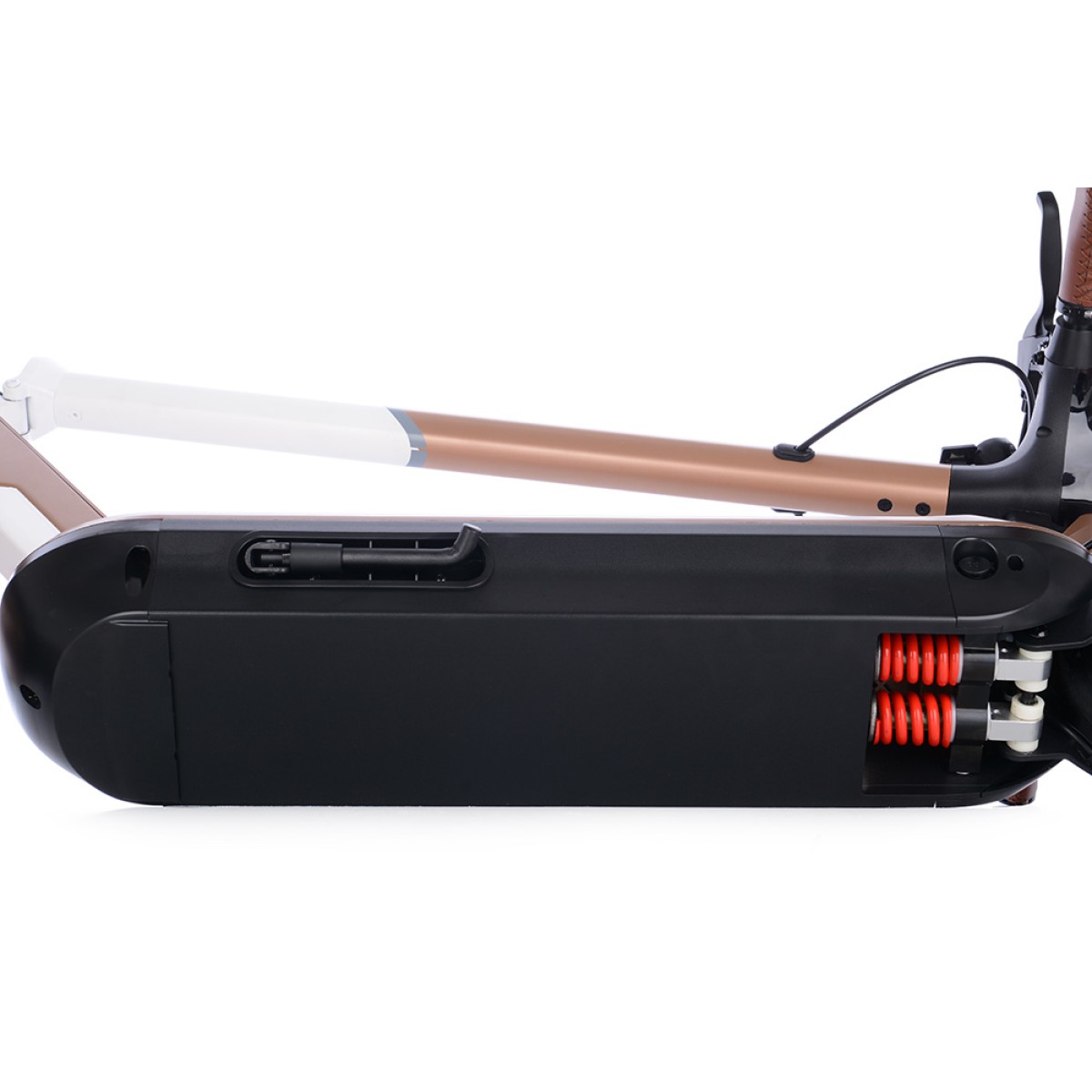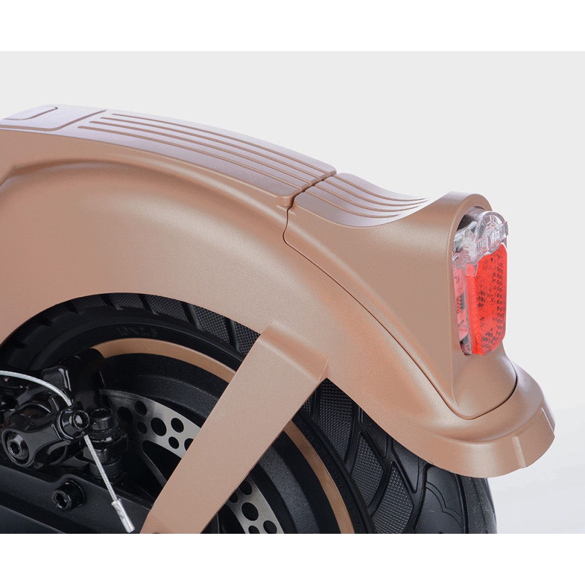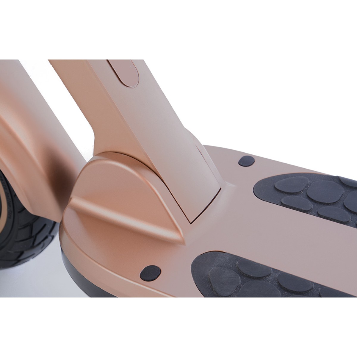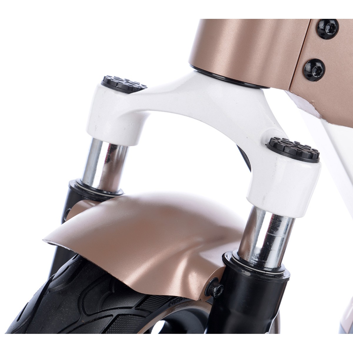 Безгрижното каране се осигурява от безкамерни гуми 10x2.5", които никога не се пробиват и преодоляването на препятствията е по-лесно благодарение на големия им диаметър. По-голямата ширина на гумата също спомага за стабилността на пътя. И предната, и задната вилка са пружинирани за удобно каране дори и на неравните повърхности.Задния калник е подсилен за да елиминира счупване и неприятни звуци при преминаване през неравности.