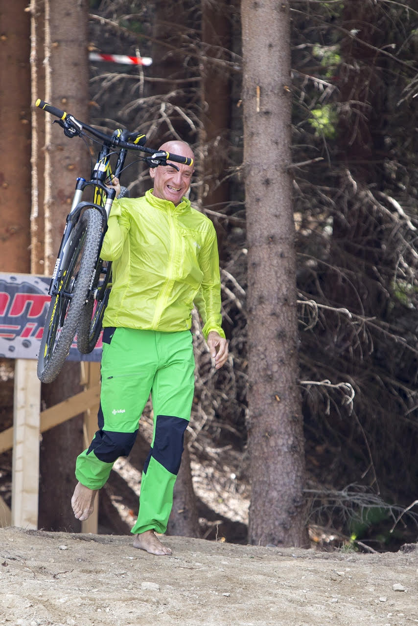 Our partners from KILPI graciously provided two outfits which The Barefooted ran the race track with for DH – shoeless, with a bike on his shoulder.