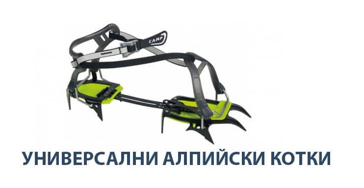 - Универсални (с каишки) – Този тип алпийски котки могат да бъдат закрепени и поставени практически на всякакъв тип зимна или друга обувка. Исторически погледнато, това е първият начин за закрепване на котки, а може би и най-разпространения