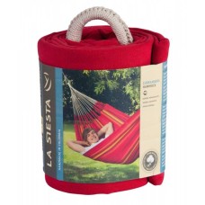 Класическият двоен хамак Currambera, в традиционни червени нюанси, е с широка текстилна част и по тази причина е много удобен да се ползва и от двама души. Изключително добро разпределение на теглото на повече от един човек. Мек и приятен на допир материал. Комбинацията от цветове представлява силен акцент, така че Ви съветваме да го окачите на място, което трябва да „съживите“. Един такъв прекрасен, а и функционален „аксесоар“ се вписва прекрасно във всяка градина, двор или дори помещение (вътре на закрито). А двойният му размер дава възможност да се насладите на кратка почивка заедно с любимия човек! Направете го!