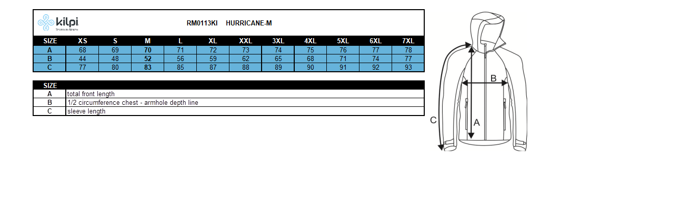 Kilpi Hurricane guarantees a water resistance of 20,000 mm and breathability of 30,000 g / m2 / 24h thanks to waterproof zippers and glued seams. The KILPI HURRICANE has two main zipper pockets.