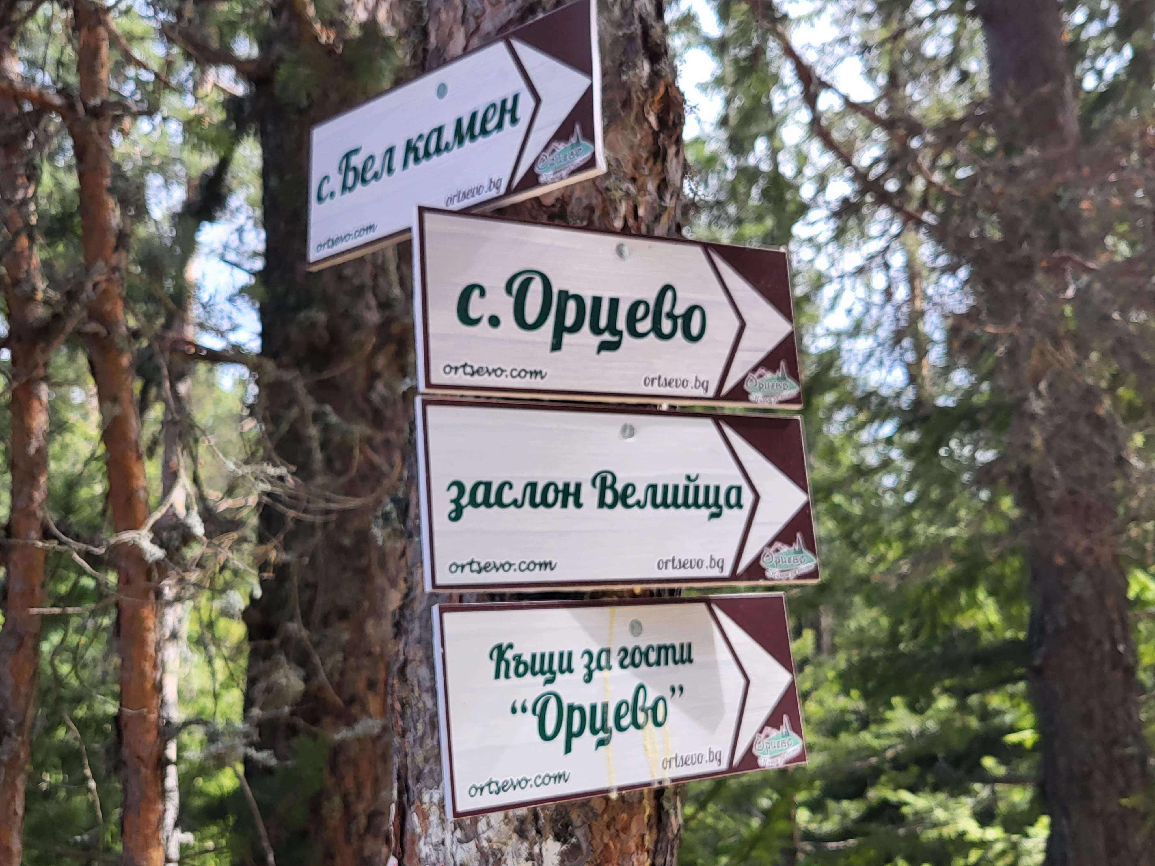 Минахме покрай джамията в селото и по коларския път и червената маркировка се насочихме към къщата за гости в с.Орцево. Пътят е обозначен с табелки и маркировка, направени от домакиня на къщата в Орцево. Влязохме в гората. Вятъра утихна. По-късно ни заваля дъжд. Не бяхме учудени, по прогноза даваха превалявания. Носихме си дъждобрани и водоустойчиви панталони.