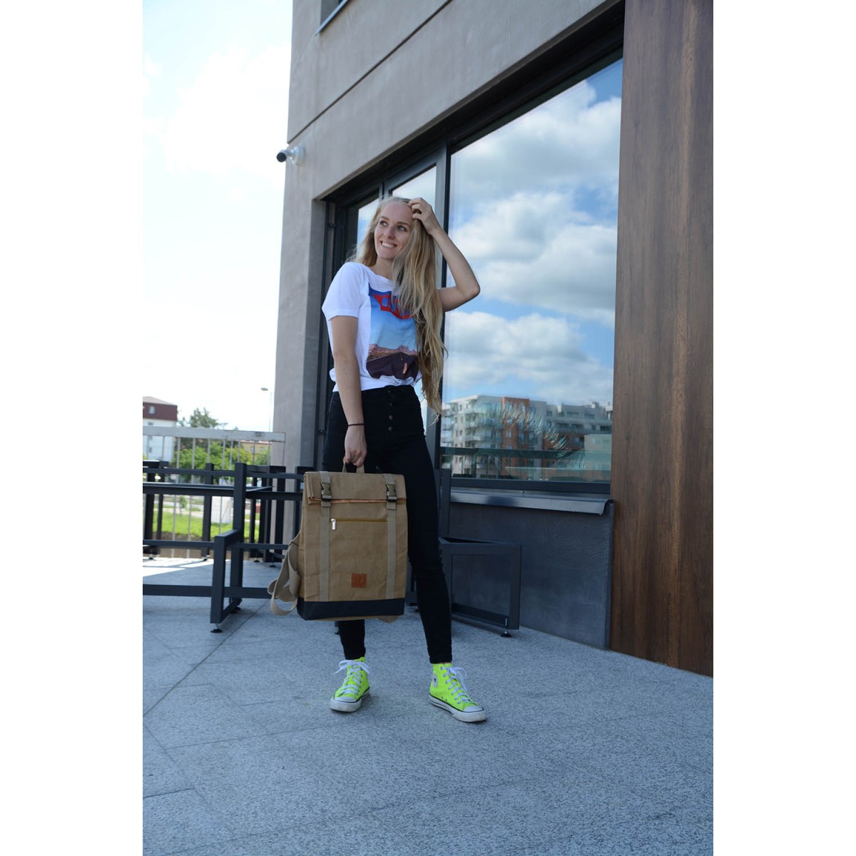 Раница от проекта TEMPISH ECO-MOVEMENT. Благодарение на използването на миеща се хартия, използването на пластмаси върху тази раница е спестено с 36%. Също така някои пластмасови катарами и катарами са заменени с метални. Използваните материали отговарят на изискванията на OEKO-TEX: СТАНДАРТ 100. Основният външен материал на раницата е водоотблъскващ и устойчив на абразия.