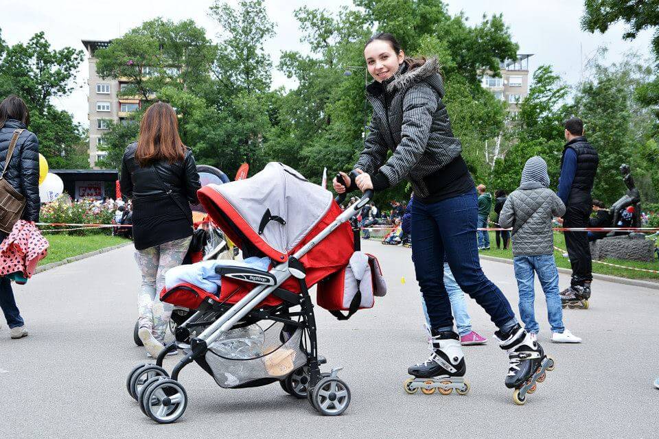Каним и всички каращи майки и татковци с бебчовци в колички на Бебо Ролершествие по алеите на парка, за да покажем, че може да се спортува, и докато се грижим и разхождаме най-малките.