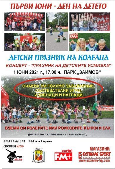 Ролерфест и Празник на детските усмивки на 1 юни 2021 17 ч. Парк Заимов