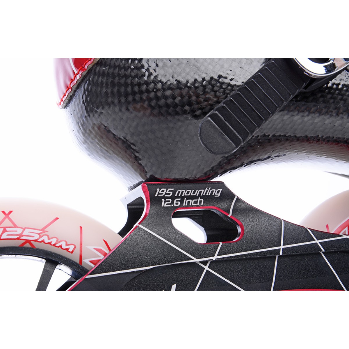 Обувката е изключително лека, направена от 7-слоя въглеродни влакна. Тя може да бъде индивидуално оформена - препоръчва се да се извърши този процес многократно в няколко последователни стъпки при температури до 110 ° C. Преди процеса на оформяне е важно да се свалят катарамата и колелата, да се запази шасито на място - в случай, че ще бъде свалено от обувката, това може да доведе до промяна на разстоянието между сглобяемите отвори. по време на процеса на оформяне !! Всеки потребител извършва тази специфична промяна на конструкцията на ролерите на свой собствен риск. След извършване на тази стъпка гаранцията за ролковите кънки се прекратява веднага !!! Чрез неправилно действие или техника обувките могат да бъдат повредени безвъзвратно!
