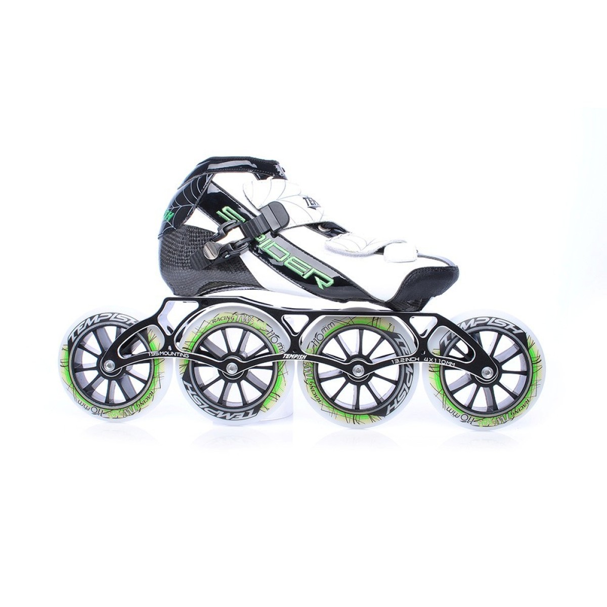 Новото шаси TEMPISH WEB е най-хубавото нещо на пазара за любителите на скоростно каране. Изтънчен дизайн, заедно със специална технология на производство и използвани материали - изработени от AL 7000. Теглото е значително намалено до невероятните 188 г като същевременно се поддържа висока якост и маневреност. На шасито могат да бъдат поставени 4 колела с максимален диаметър 110 мм. Монтажни отвори: 195 мм. Тегло на шасито 188 грама.