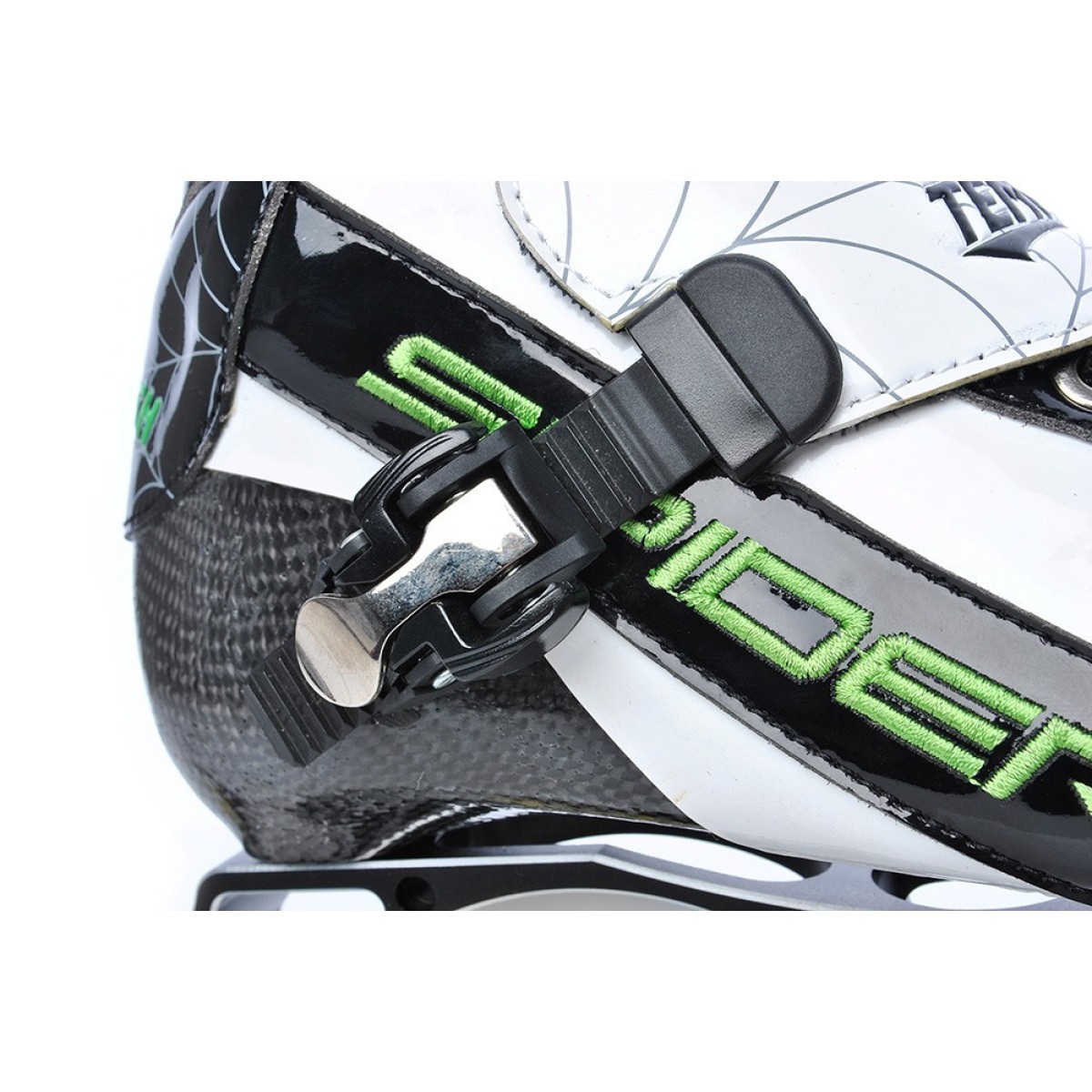 - Шаси: WEB – супер подсилена моно-конструкция. Ниско захващане на шасито към обувката SPIDER. Еластична, много здрава сплав AL 7000 със специална термична настройка за по-висока здравина. Тегло: 188 грама. Връзката на обувката към шасито е с централни болтове с регулируема позиция. Външно покритие: Hi-POLISH ALUX черен, сребрист, без спирачка