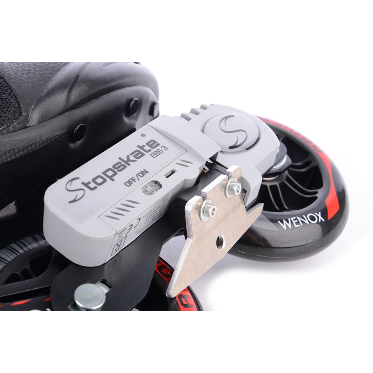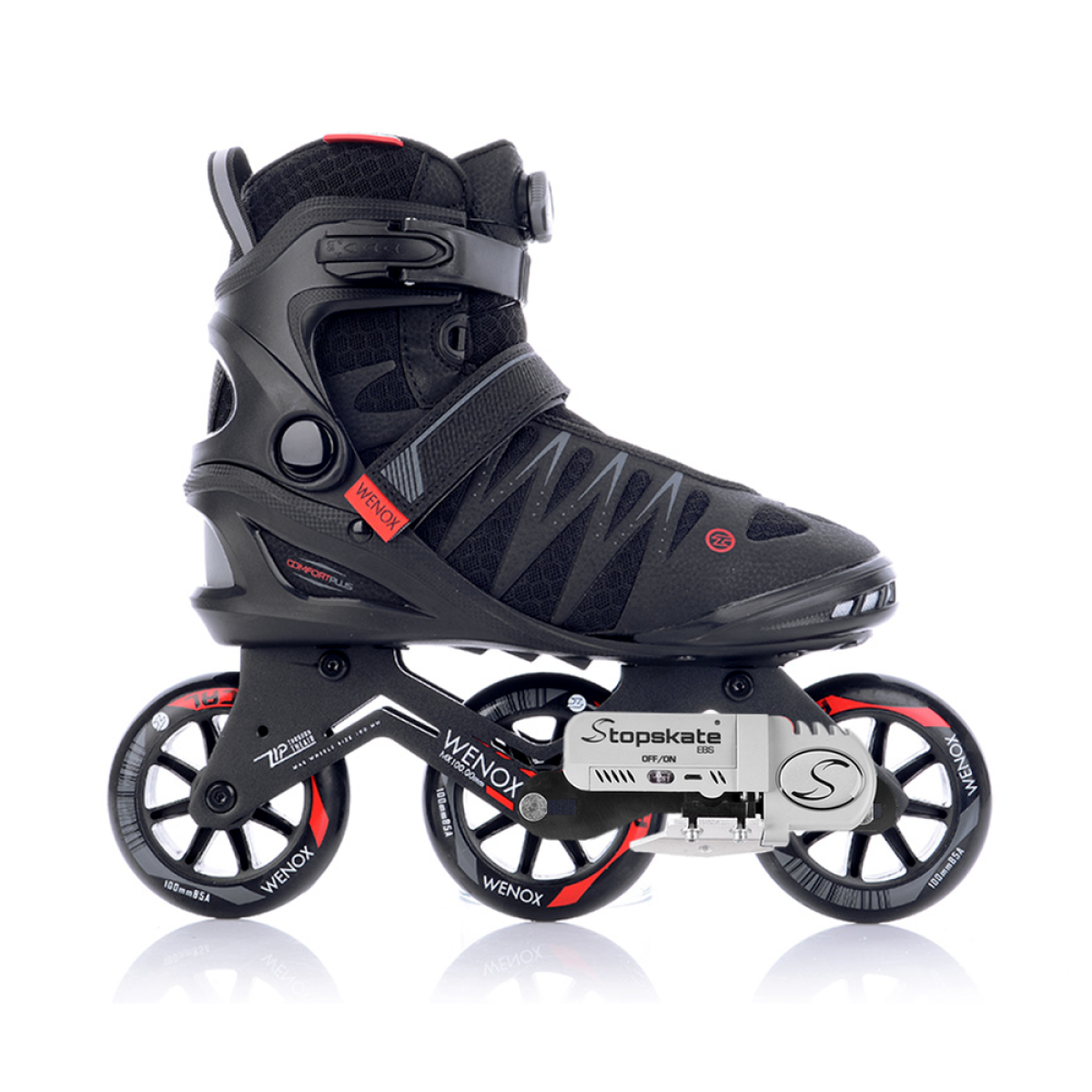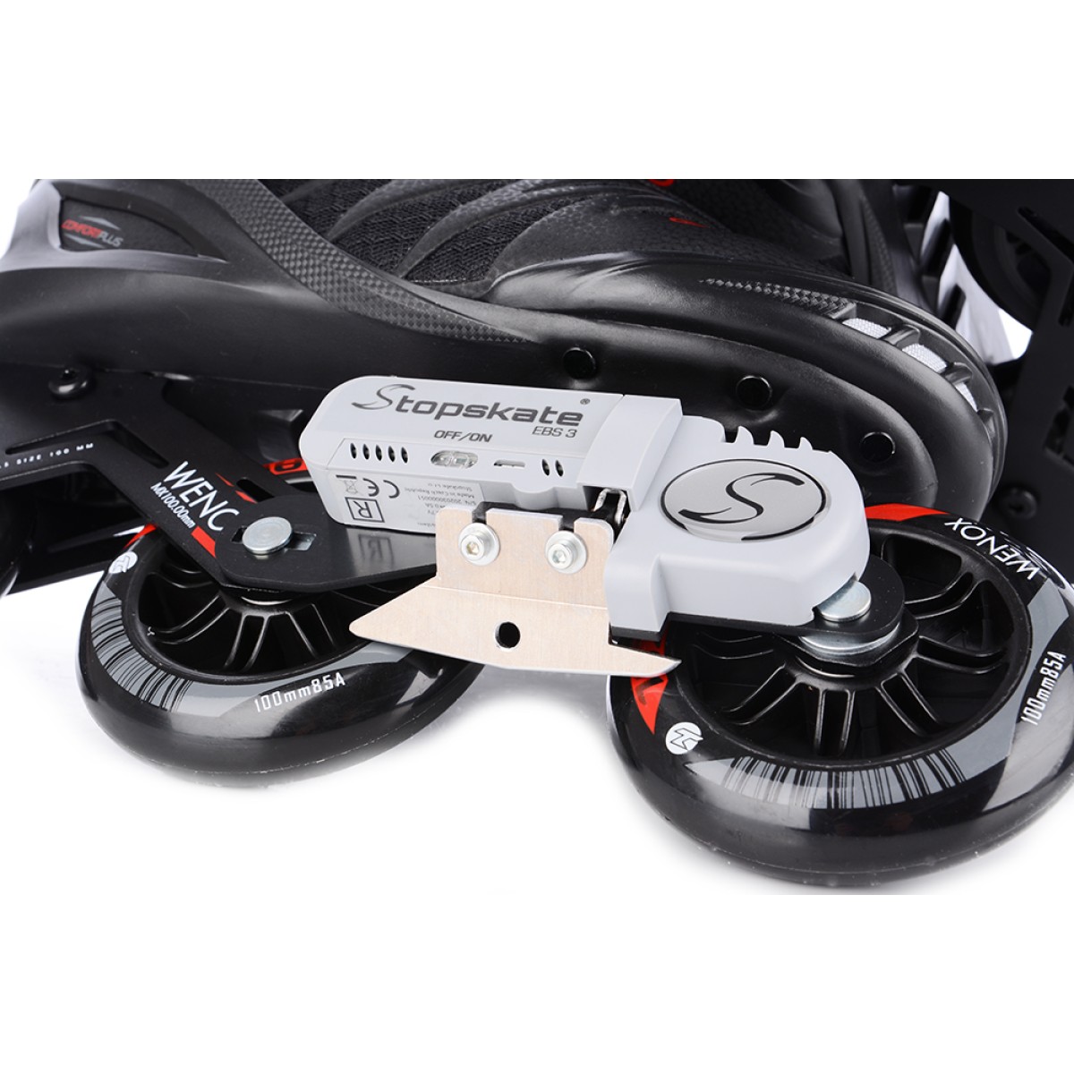 Кънките са оборудвани с революционна електромеханична спирачна система, управлявана от безжичен контролер. Спирането на тези кънки сега е по -удобно, по -безопасно, по -просто и по -ефективно от класическата спирачка, разположена зад задното колело! Този модел е предназначен за потребители до 90 кг.