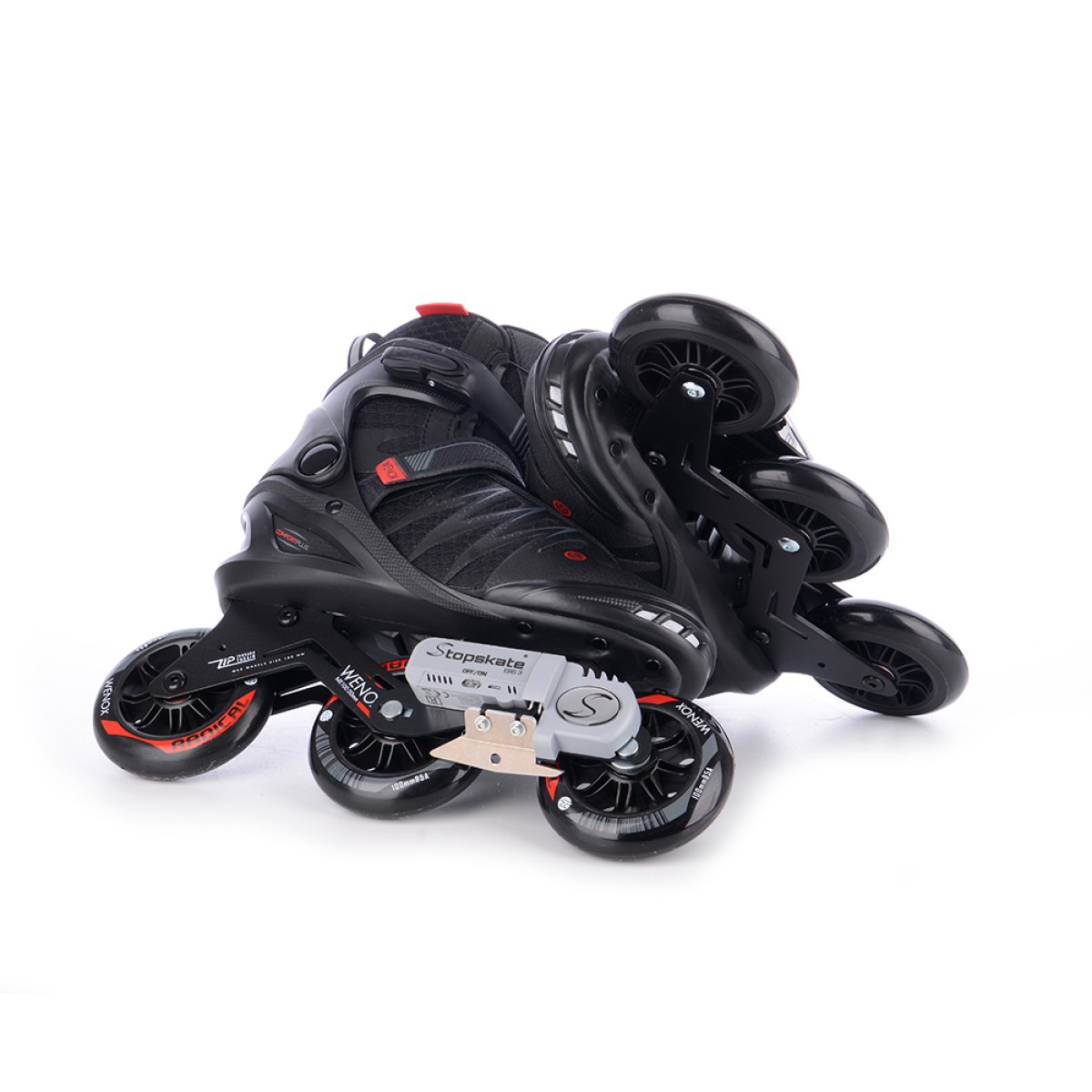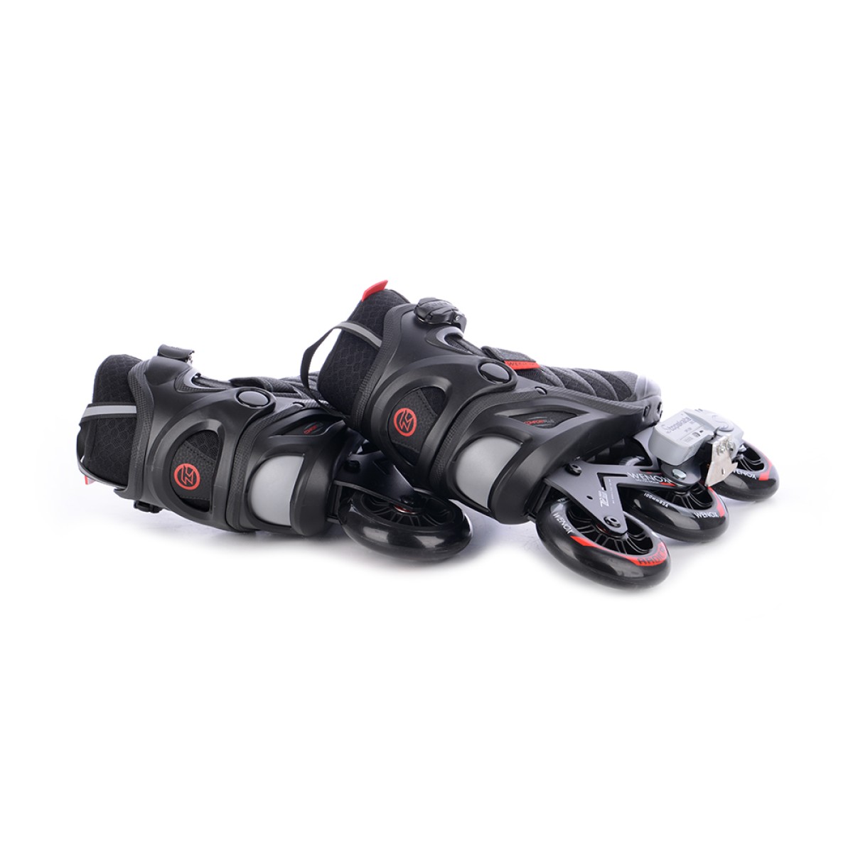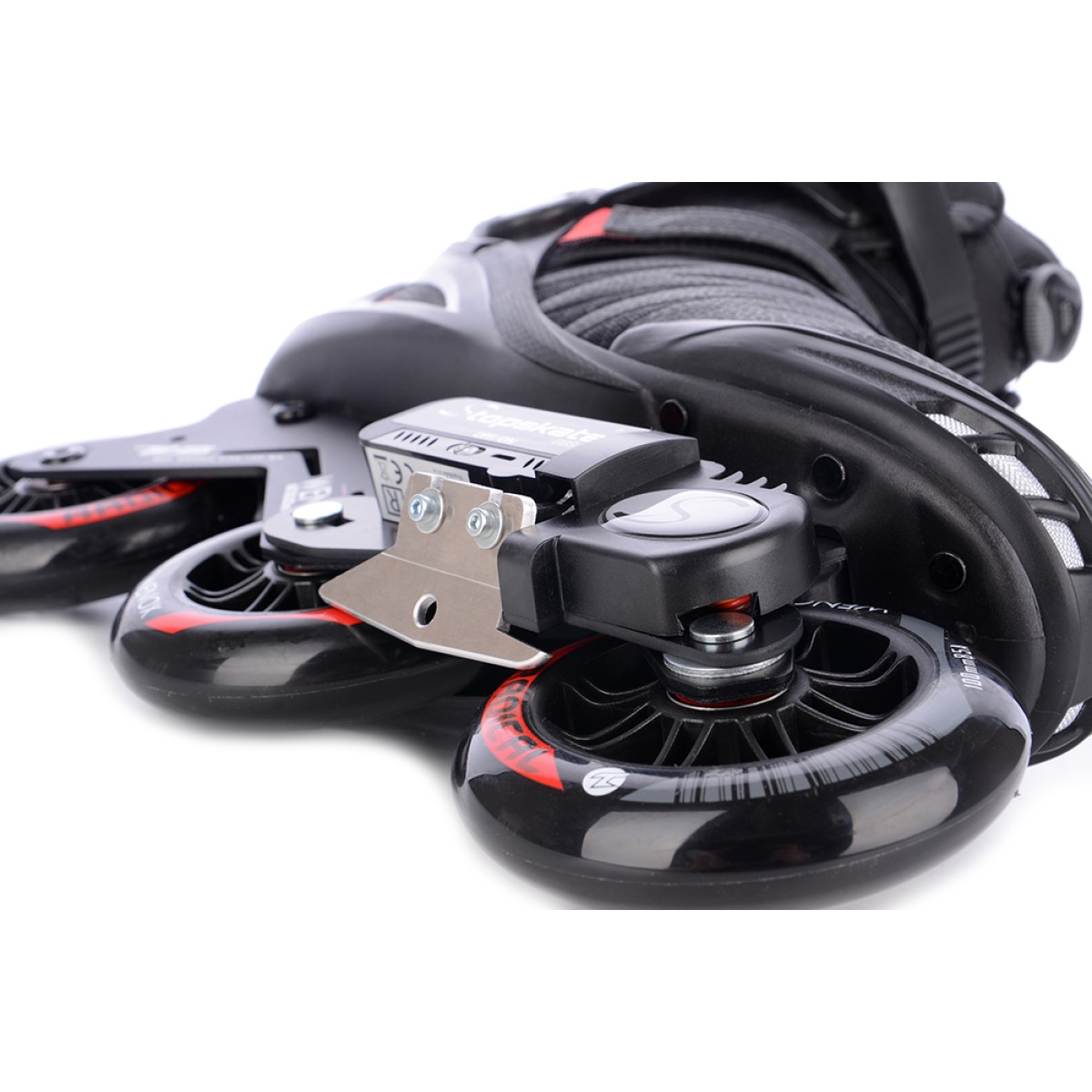 Кънките са оборудвани с революционна електромеханична спирачна система, управлявана от безжичен контролер. Спирането на тези кънки сега е по -удобно, по -безопасно, по -просто и по -ефективно от класическата спирачка, разположена зад задното колело! Този модел е предназначен за потребители до 90 кг.