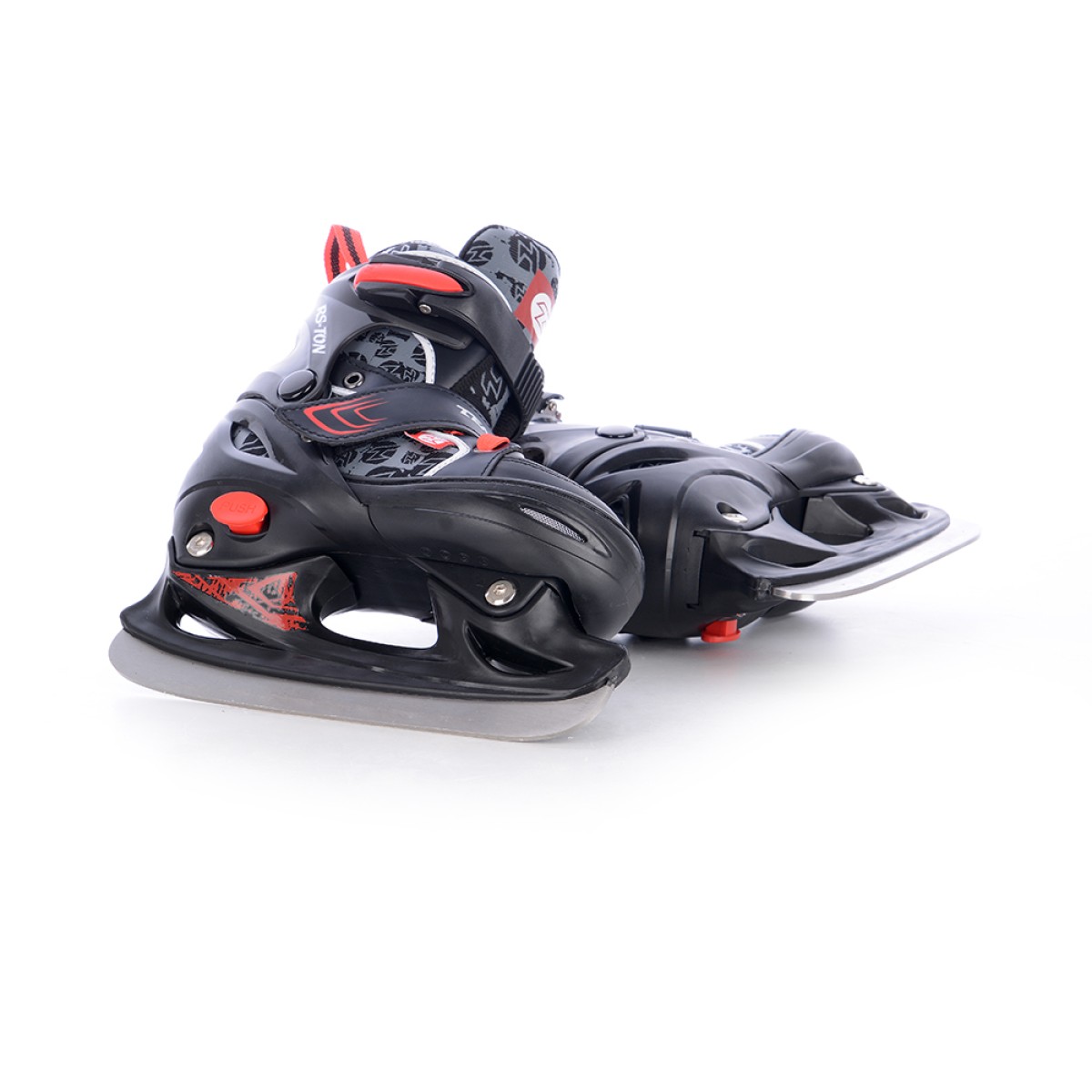 Plastic boys' skates with new design are designed for recreational sports, beginners and advanced skaters. Soft fast drying removable liner ensures comfort of the child's foot. The advantage is simple adjustability skates size button in the side of the skeleton.