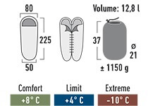 Характеристики:тип: Мумиятемпературен диапазон: комфорт / Лимит / Екстрем: 12 / 8 / -4 °Cтегло: 0.80..