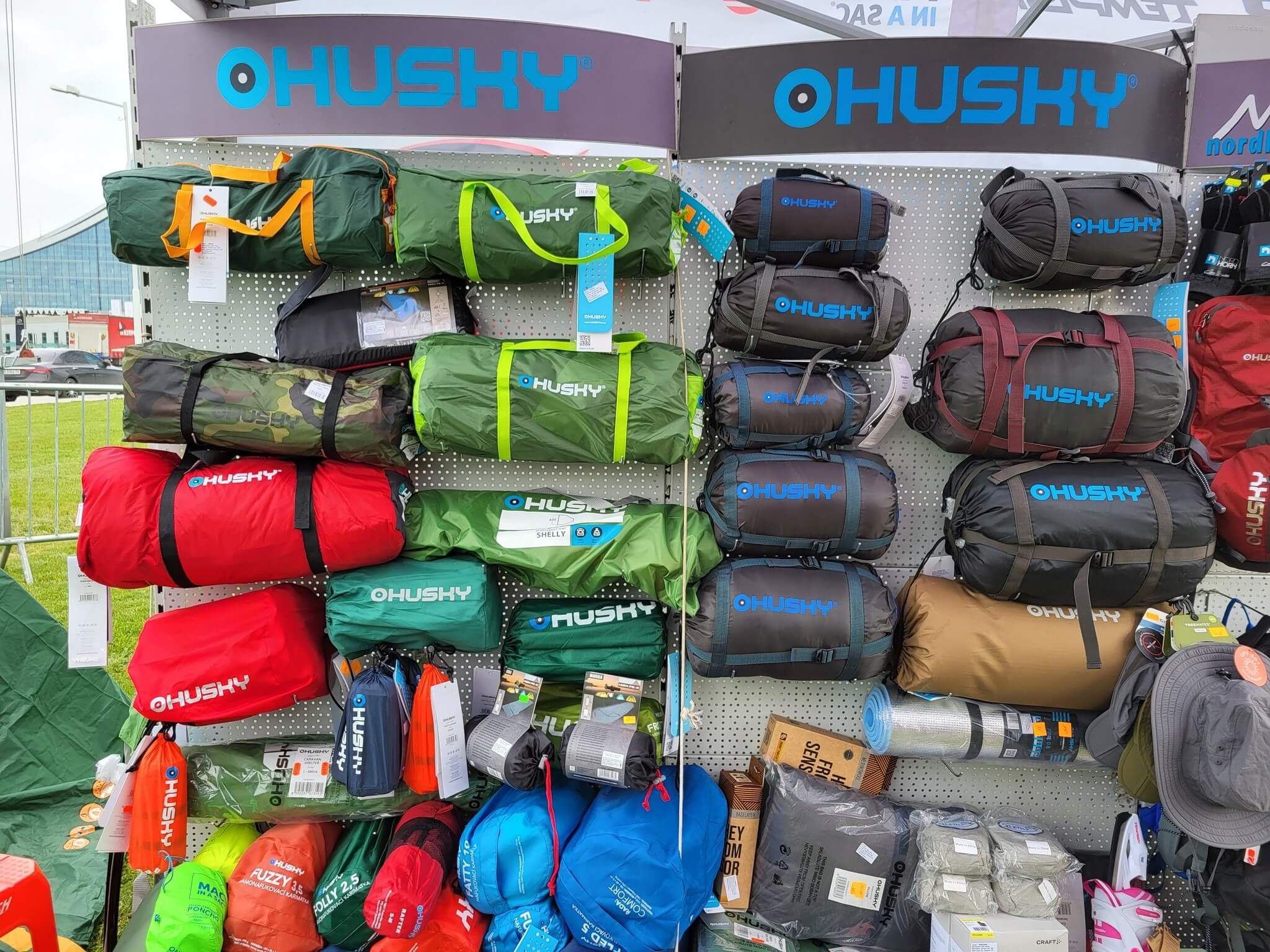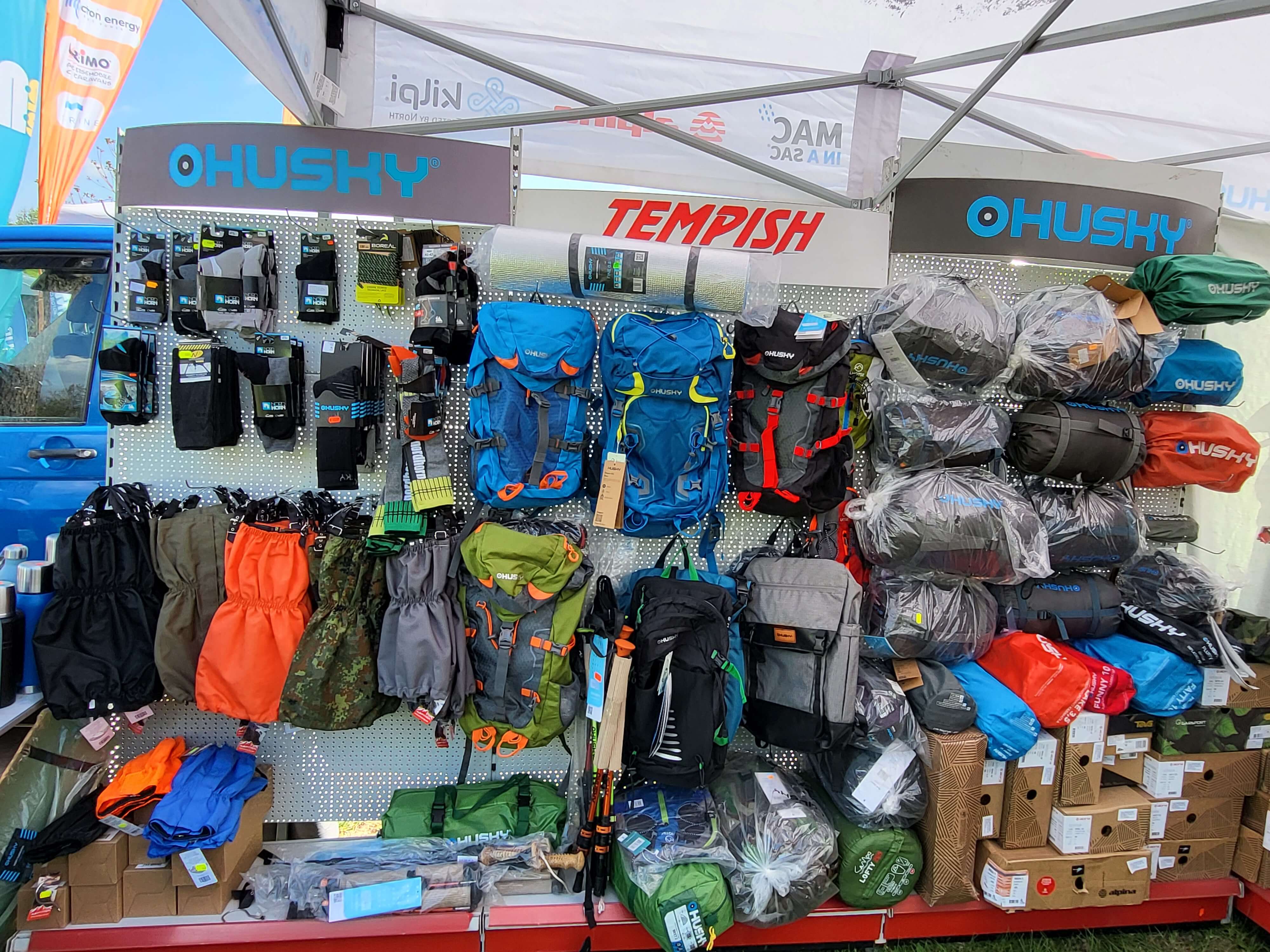 - палатки, тенти, спални чували, къмпинг маси и столове, самонадуваеми шалтета, раници, туристически облекла, термоси на чешката фирма HUSKY;