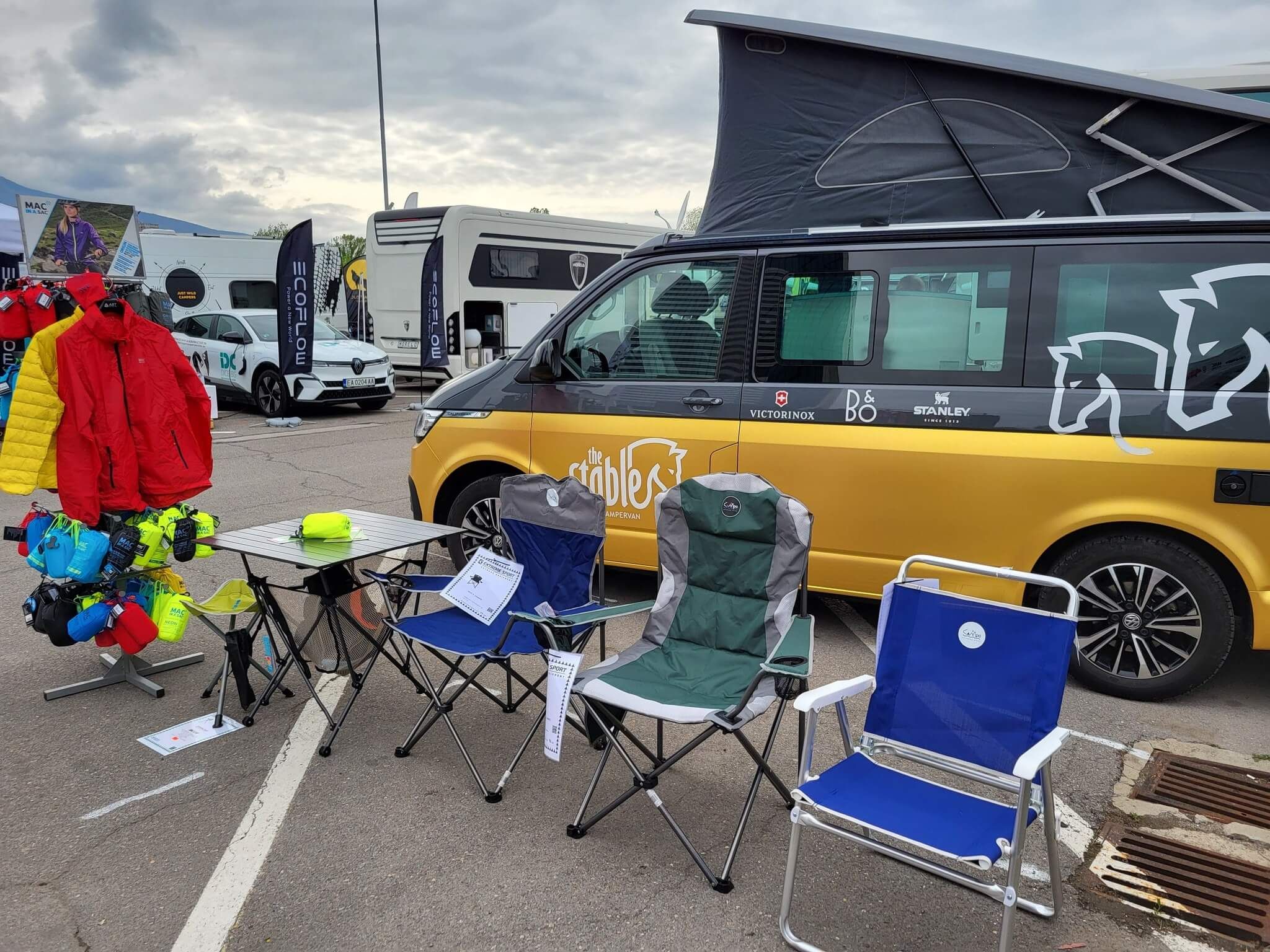 Също така ще има разпънати маси и столове за къмпинг на Husky, Campo и Vango.
