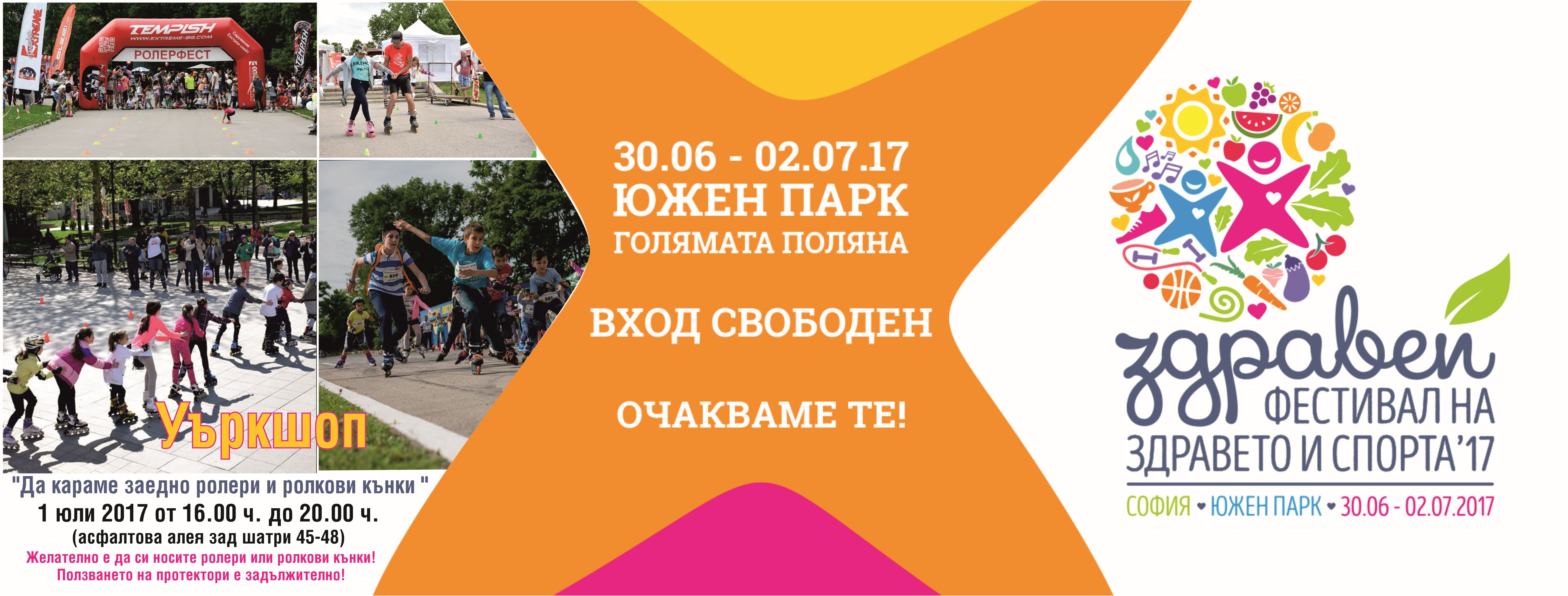 Ежегодният Фесивал на Здравето и Спорта Ви очаква с поредното си издание от от 30.06.2017 г. до 02.07.2017 на голямата поляна в Южния парк с магичната си атмосфера и наситената с разнообразни творчески работилнички, спортни класове, уъркшопи, лекции на различна тематика програма, обединени от идеята за популяризиране воденето на здравословен и балансиран начин на живот.