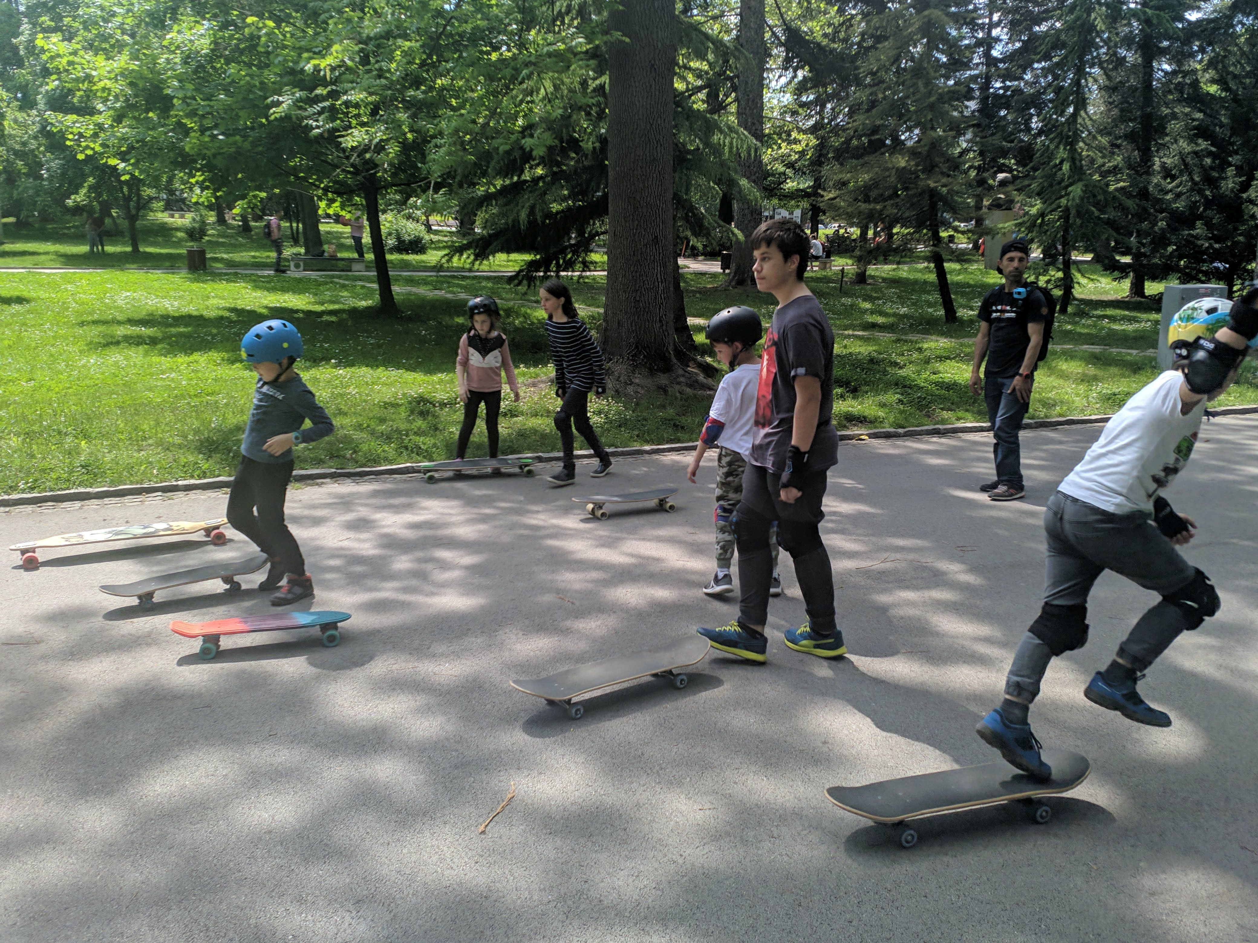 Уроците се провеждат със собствени лонгборди, скейтборди, крузъри и протектори на участниците!