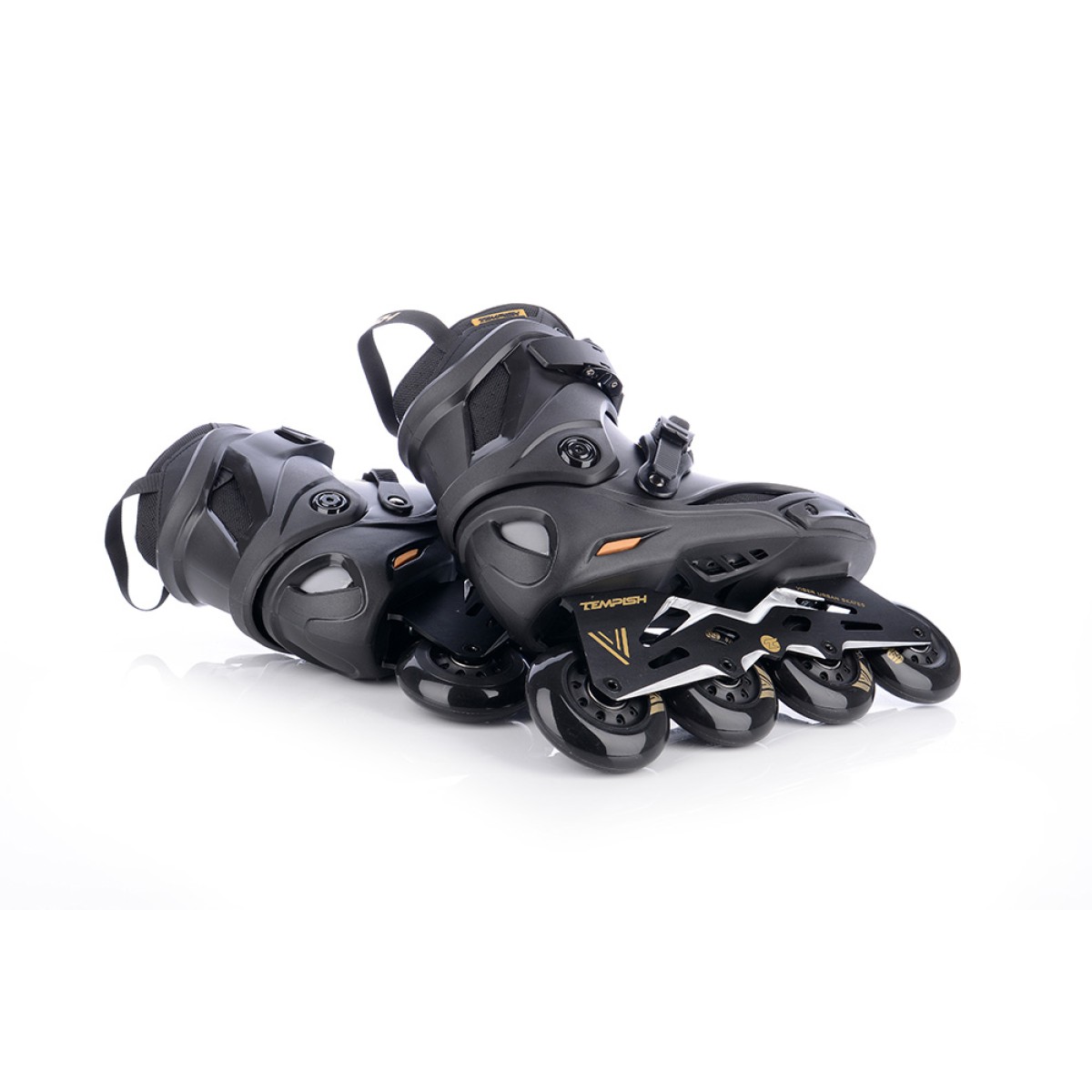 The CNC-machined frame is heavily reinforced with a spatial construction, offering exceptional strength, stability, and precision. It is a proprietary design and construction of the TEMPISH brand. The frame is attached to the boot with two central screws and can be adjusted both laterally and longitudinally. Hollow 8mm axles reduce weight and are mounted from the inner side on the left skate and from the outer side on the right skate to prevent screw loosening during skating.