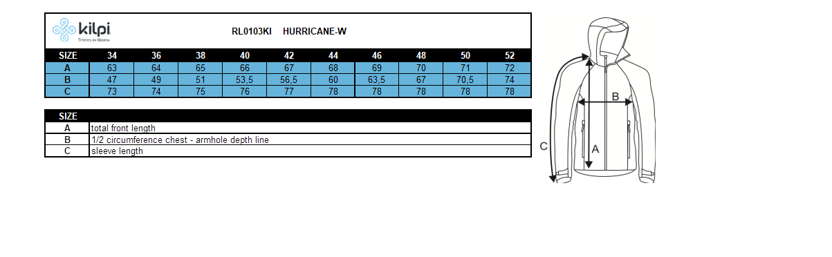 Kilpi Hurricane guarantees a water resistance of 20,000 mm and breathability of 30,000 g / m2 / 24h thanks to waterproof zippers and glued seams. The KILPI HURRICANE has two main zipper pockets.